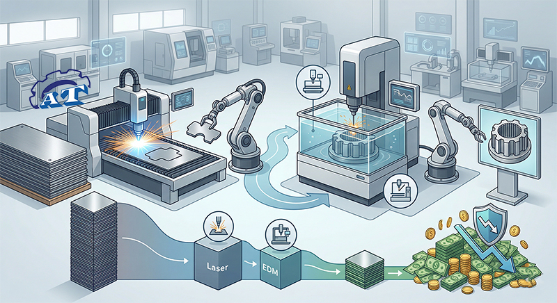 Ngành cơ khí đang tiến tới mô hình Hybrid Manufacturing: Sử dụng Laser để cắt phá thô (tối ưu tốc độ) và dùng EDM để tinh chỉnh các bề mặt lắp ghép (tối ưu độ chính xác). Sự kết hợp này giúp giảm giá thành sản phẩm xuống 30-40%.
