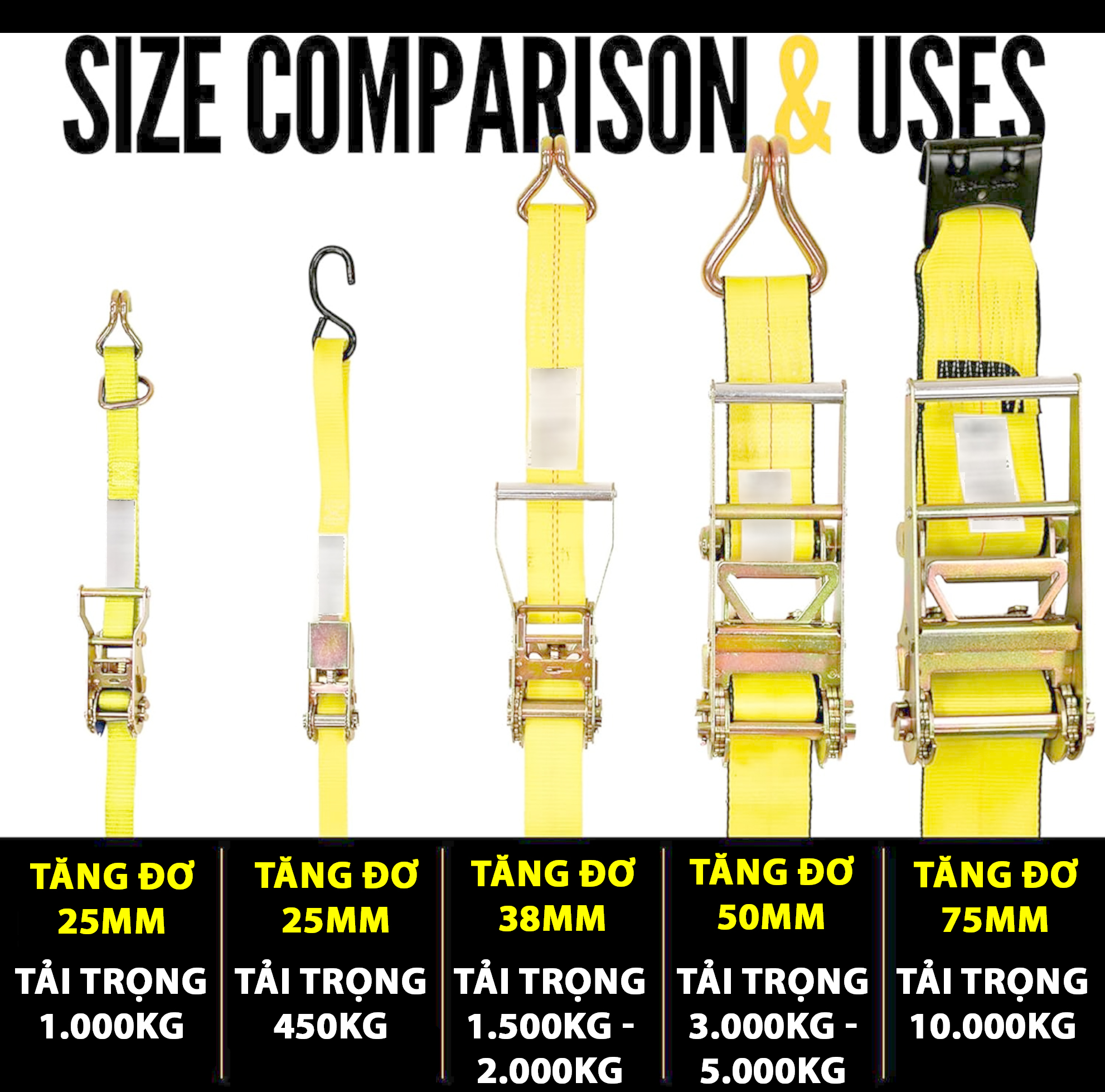 (Tải trọng từng loại dây chằng hàng tăng đơ)