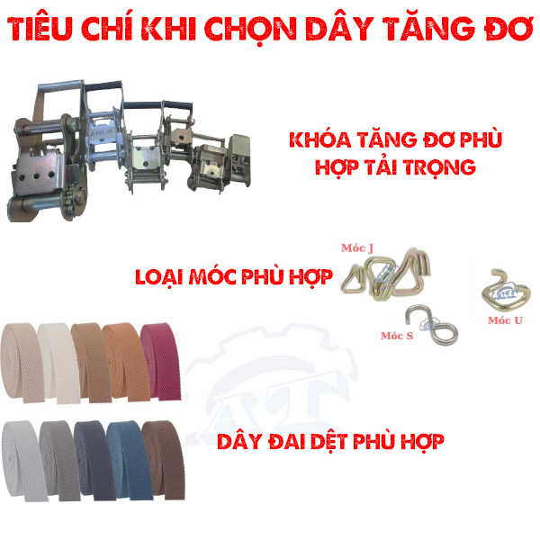 - Tải trọng của dây tăng đơ là yếu tố quan trọng hàng đầu. Tải trọng phải tương thích với khối lượng hàng hóa bạn vận chuyển.